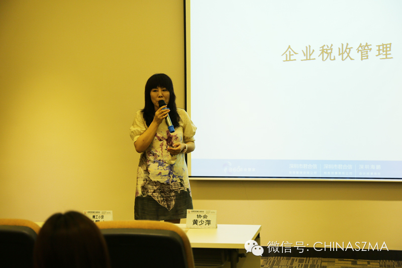 活動在協(xié)會常務(wù)副會長兼秘書長黃少萍女士的主持下拉開了序幕,深圳知名財(cái)稅機(jī)構(gòu)--深圳君合信財(cái)稅服務(wù)機(jī)構(gòu)總裁胡綿鵬先生就企業(yè)日常管理中遇到的企業(yè)稅務(wù)管理的意義、如何合理節(jié)稅、如何降低稅收實(shí)體成本等問題進(jìn)行了深入淺出的講解,參會企業(yè)領(lǐng)導(dǎo)踴躍發(fā)言,提出了不少企業(yè)日常管理中遇到的稅收問題。