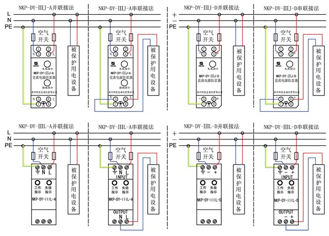 分流型:與被保護的設備并聯(lián),對雷電脈沖呈現(xiàn)為低阻抗,而對正常工作頻率呈現(xiàn)為高阻抗。 扼流型:與被保護的設備串聯(lián),對雷電脈沖呈現(xiàn)為高阻抗,而對正常的工作頻率呈現(xiàn)為低阻抗。